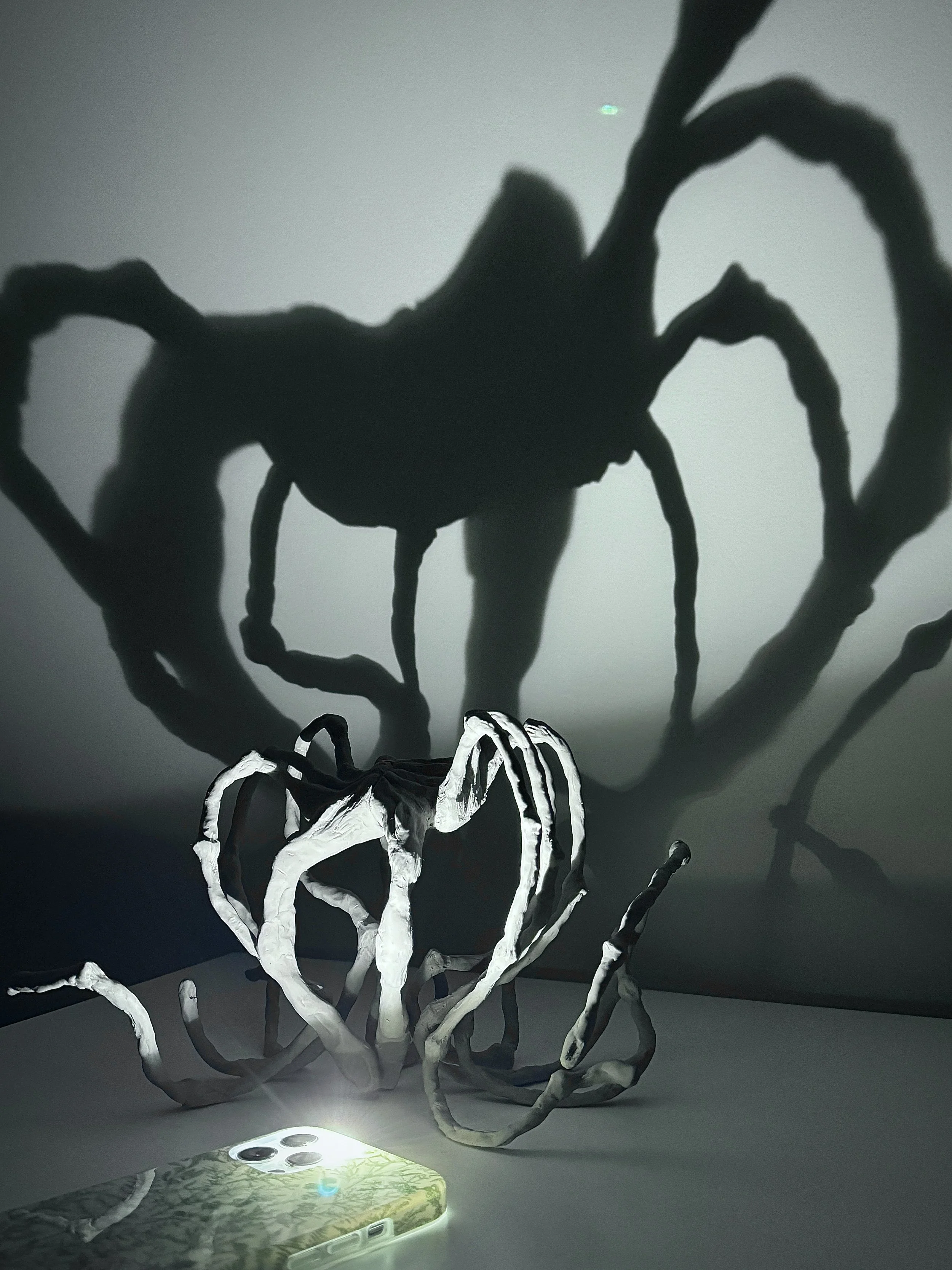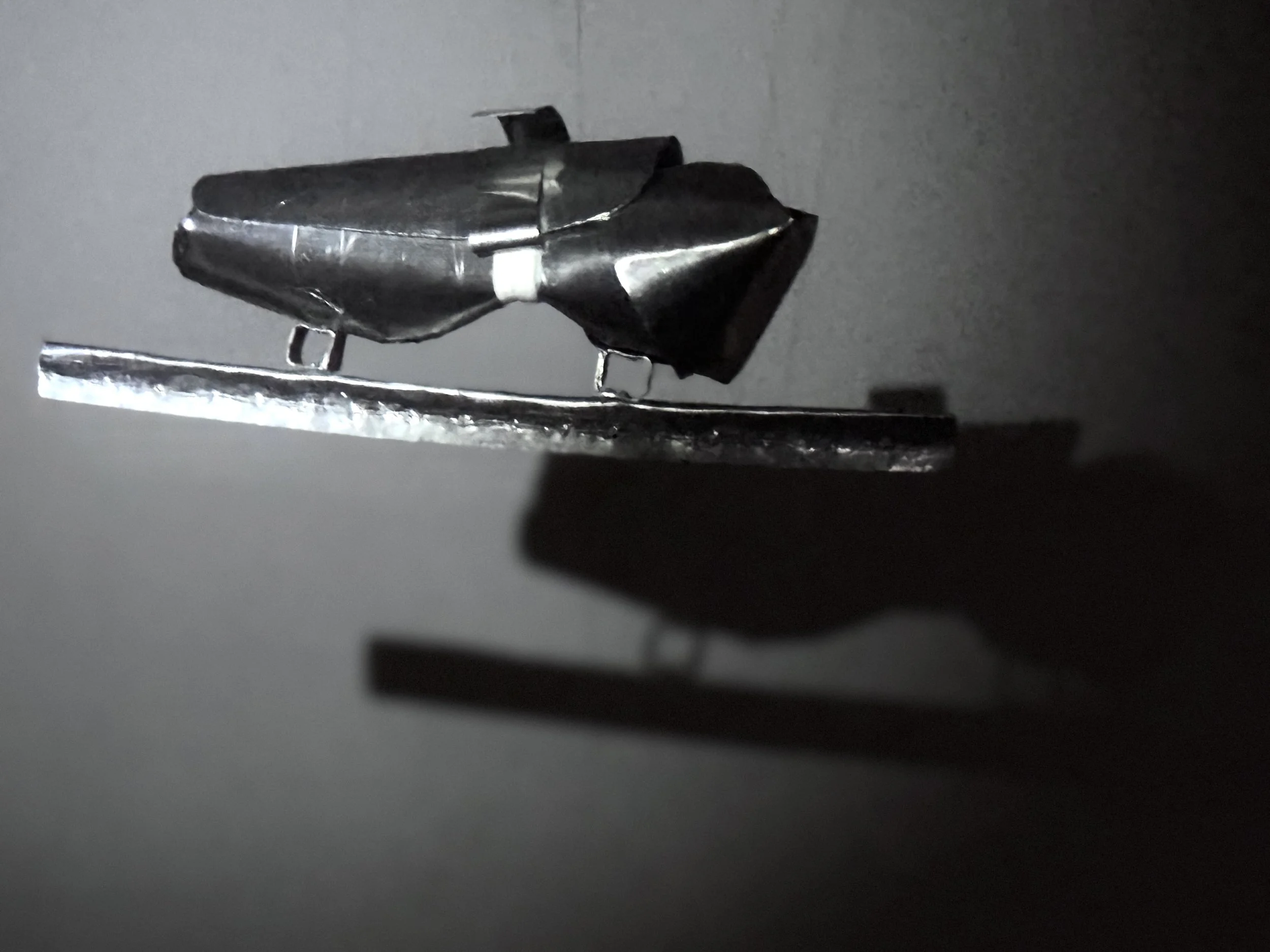 Title: Speed Skating Year: 2025 Size: 3x9 in., 0.5x14 in. (Blade) Medium: Aluminum metal sheets, Shoe lace, Bluetooth speaker, Flash light