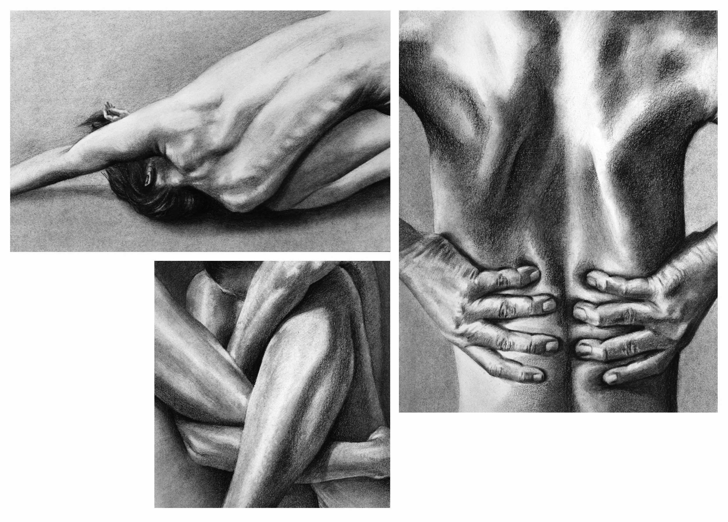 Title: Twist Medium: Charcoal on paper Size: 21.5x15.5 in, 15.5x15.5 in. Year: 2023