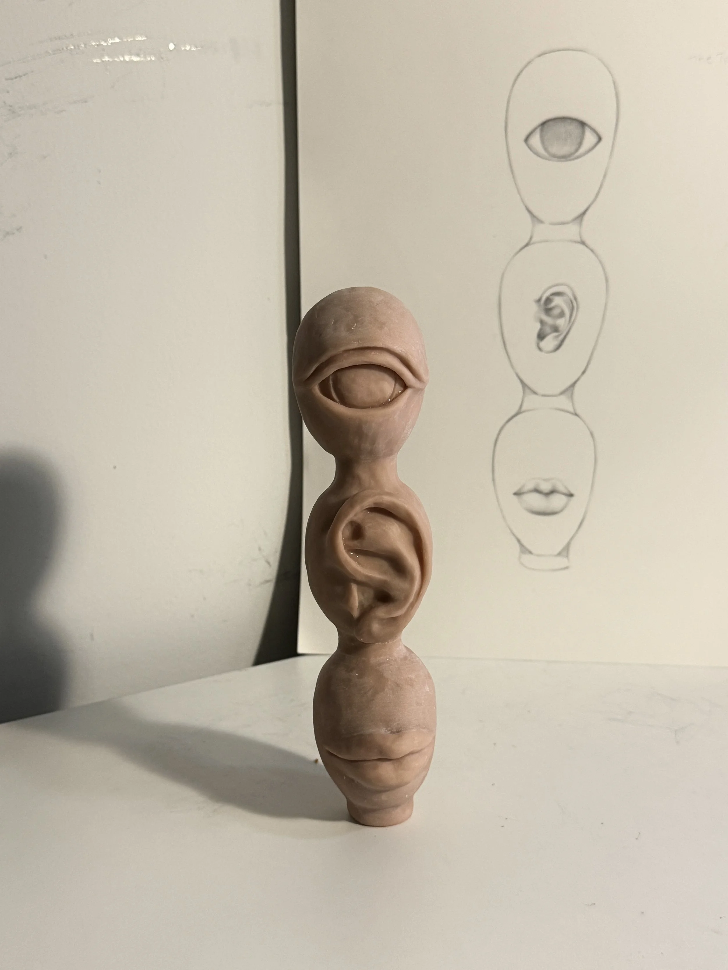 Title: The Traffic Light of Judgment Year: 2024 Size: 15x7 in. Medium: White Alabaster Stone